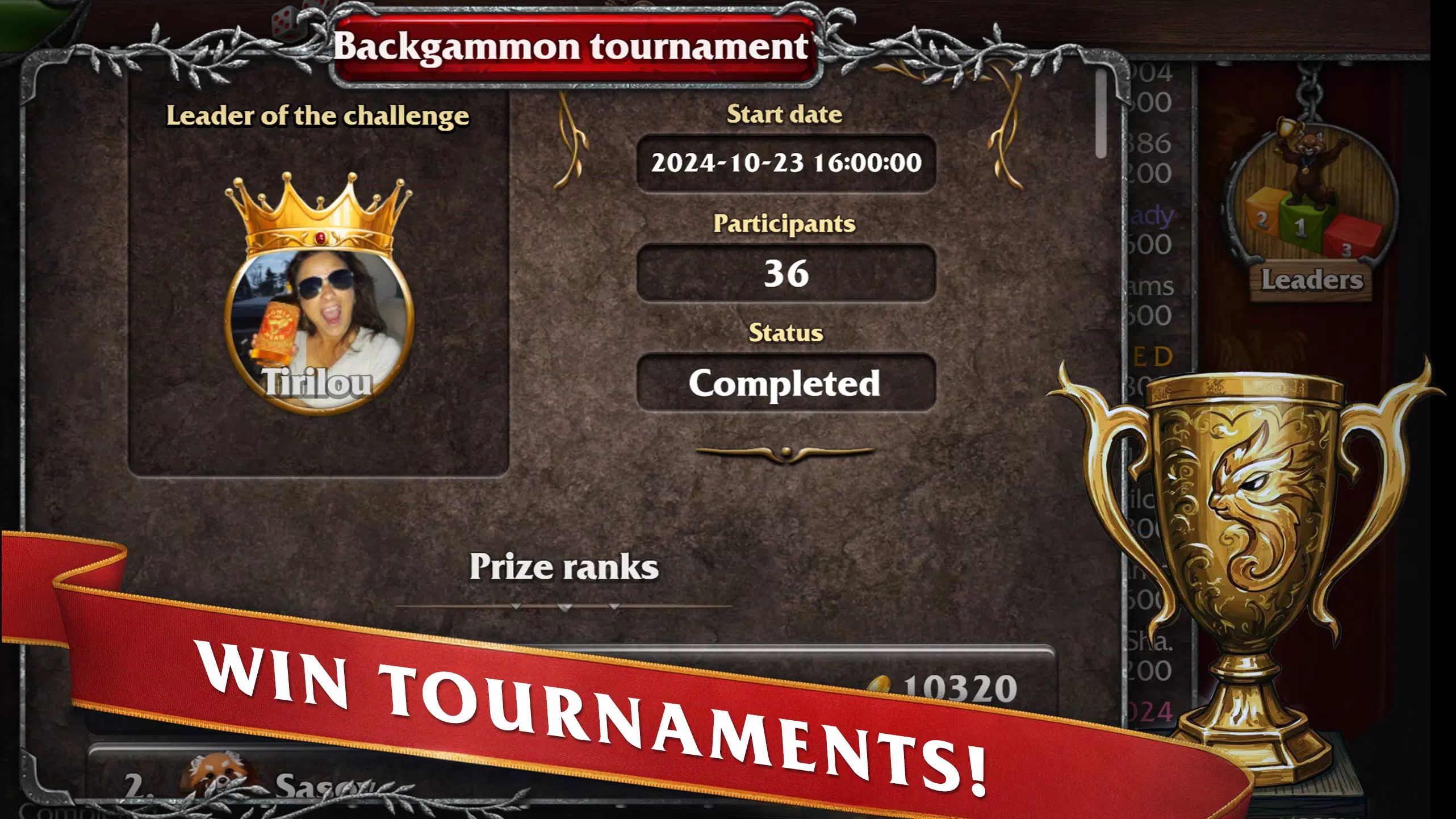 - Tägliche Turniere in Backgammon, Narde, Tavla und Nackgammon