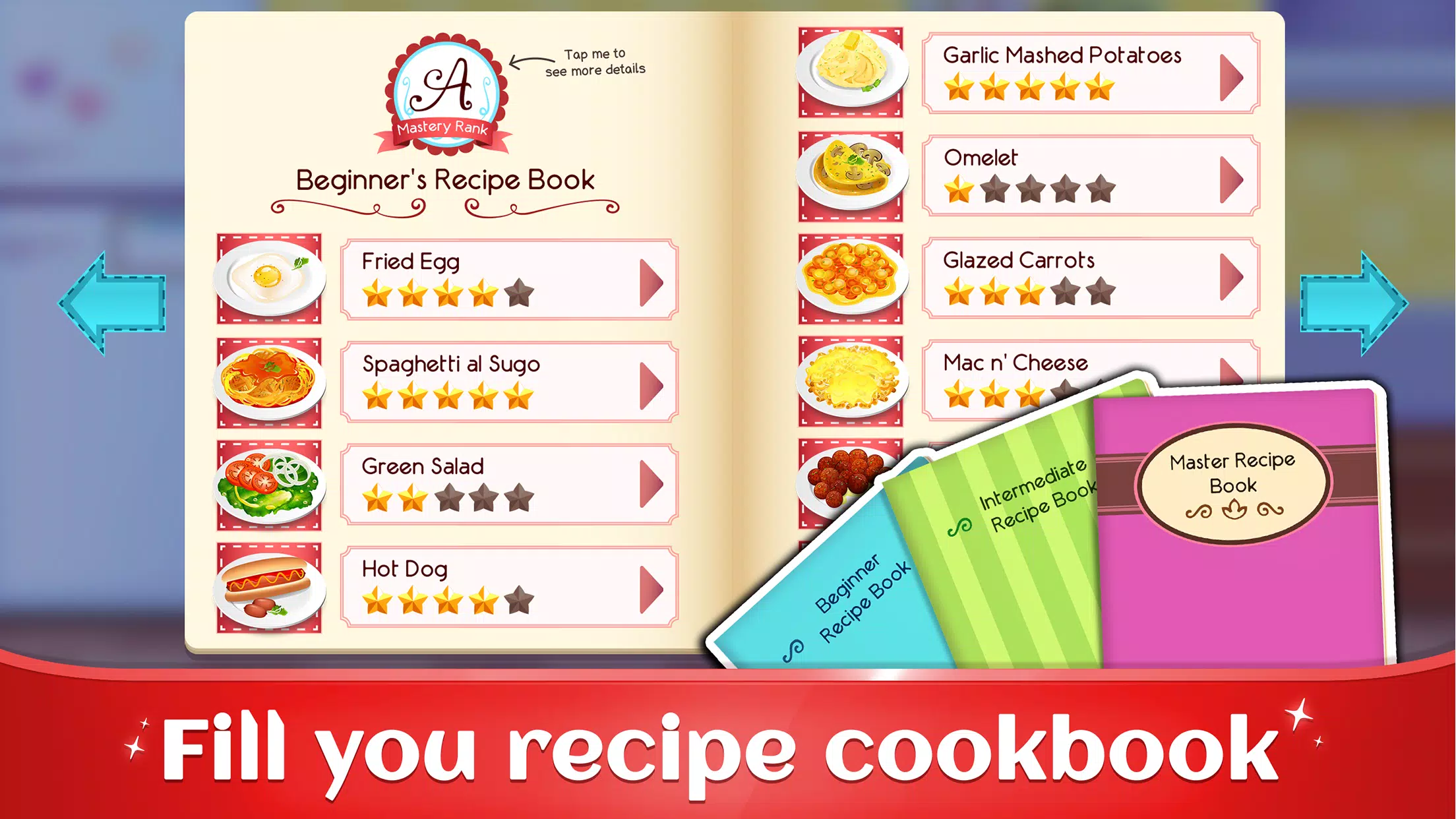 Learn to prepare food, from easy recipes like salads and spaghetti to challenging master chef creations like stuffed mushrooms or molten lava cake. With every recipe you complete, your personal cookbook fills up, showcasing your journey as a virtual master chef!