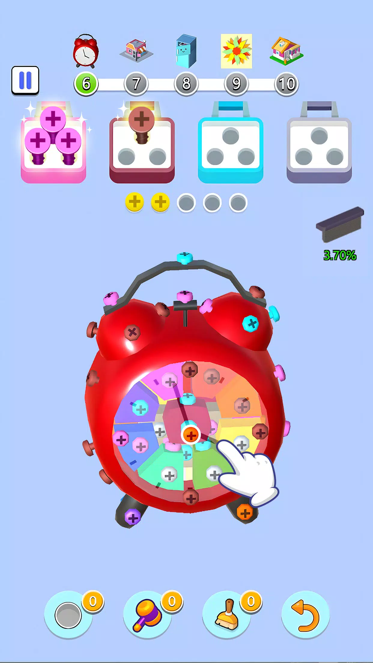 How to Play: Ready to master Screw Blast? Start by analyzing each 3D model to devise the optimal dismantling approach. Simply tap screws and methodically remove all nuts and bolts, storing spare pieces in their matching color-coded toolboxes. Perfect your puzzle-solving technique to progress through increasingly challenging levels.
