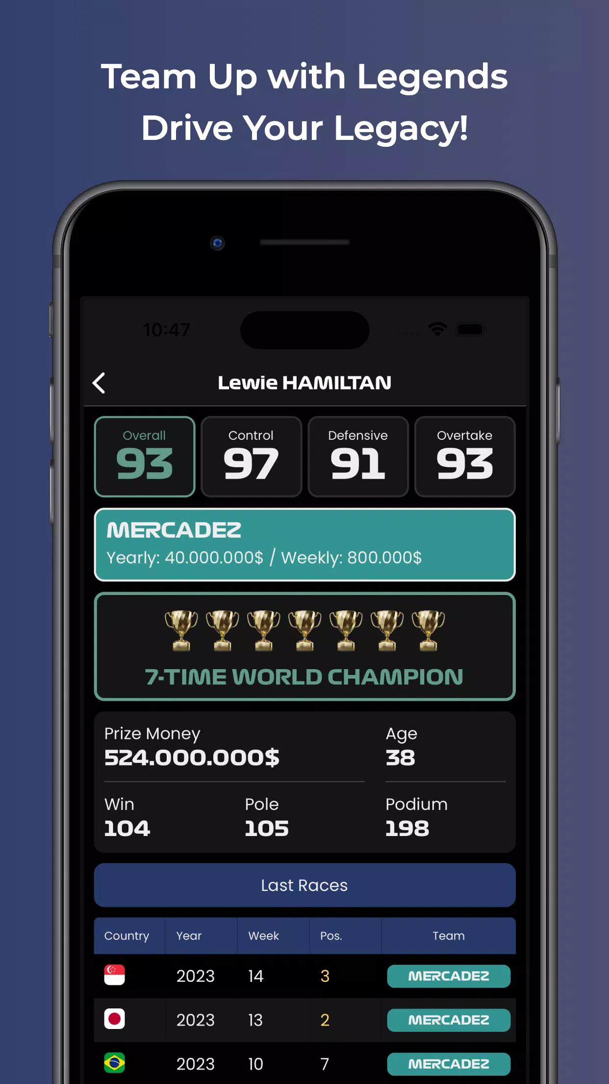 Get ready to build a legendary racing team with the most exceptional drivers! This innovative F1 management game gives you the unparalleled chance to create and manage your own racing team, aiming to break records in the world of motorsport. Find and recruit the perfect drivers, each with unique skills and personalities. Make strategic decisions and lead your team to victory in the most prestigious motorsports events worldwide.