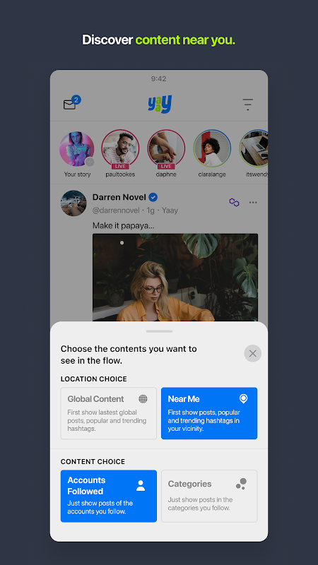 ゲーミフィケーション:Yaayソーシャルメディアは、「いいね」やレベルシステムなどのゲーム的要素を取り入れ、アプリをさらに魅力的にしています。ユーザーが「いいね」を受け取りスコアを上げるにつれて、レベルシステムで上位に上がり、人気コンテンツの中で認知を得ることができます。