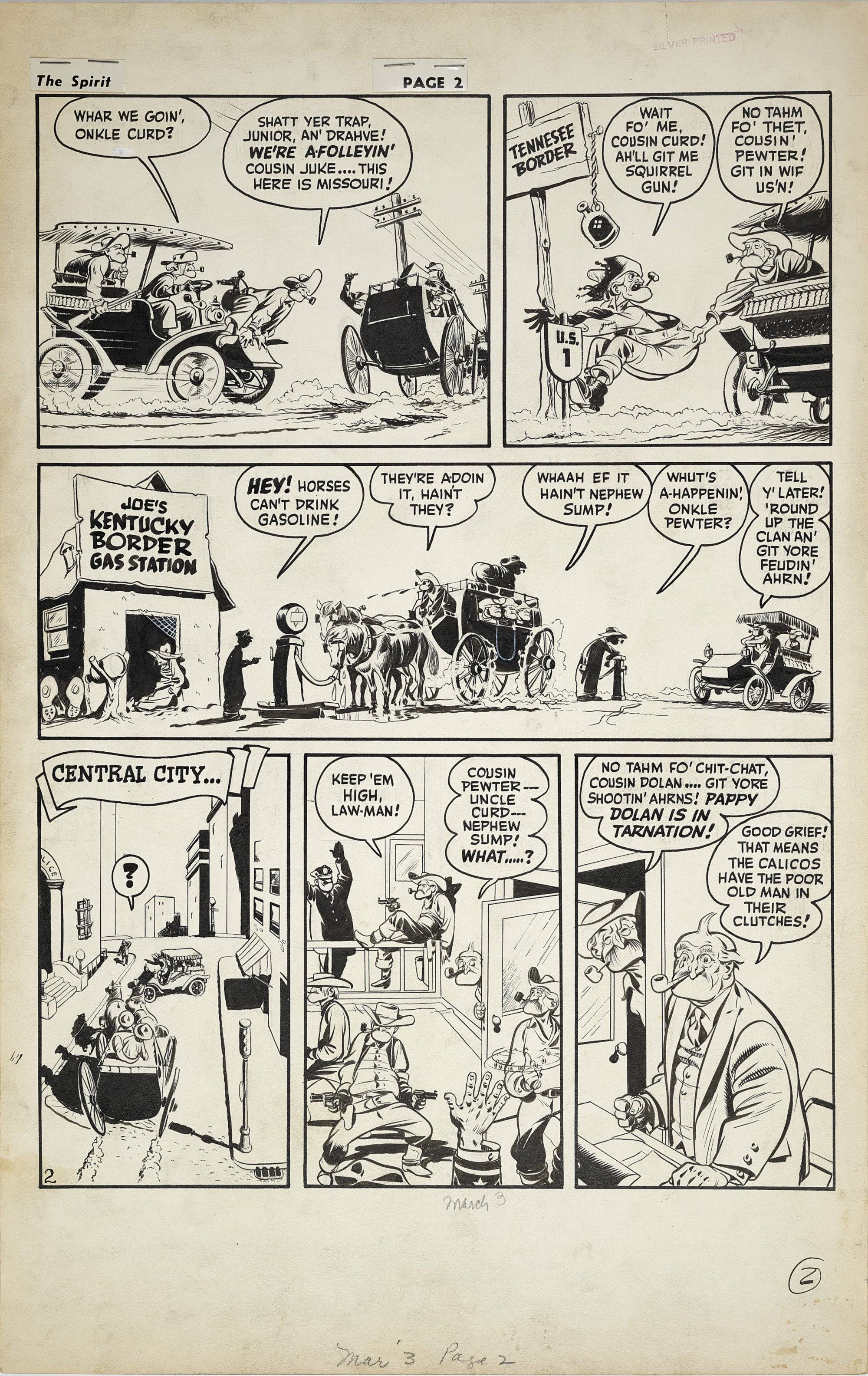 漫画本のアーティストのラッシュモア山がいた場合、遅く、偉大なウィル・アイズナーは間違いなく顕著な人物になるでしょう。彼の画期的な作品は、ニューヨークのフィリップラバーンギャラリーでの展覧会で表彰されています。これは、スピリットや神との契約などの象徴的な作品のオリジナルアートワークを特集しています。