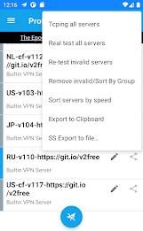 - 서버 관리: 효율적인 선택을 위해 비활성 서버를 테스트, 제거하고 속도별로 그룹화 및 정렬합니다.