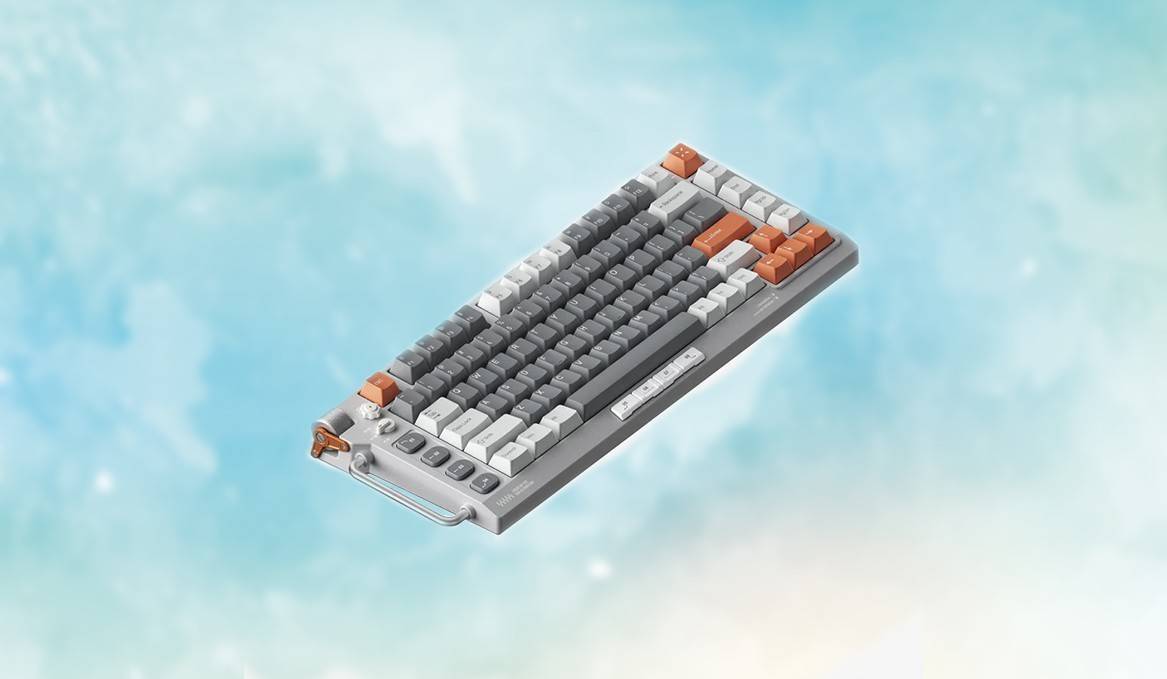The NuPhy Field75 HE stands out with its retro-futuristic design, reminiscent of 1980s technology. Its white, gray, and orange color scheme and abundance of controls will appeal to those who appreciate this aesthetic.