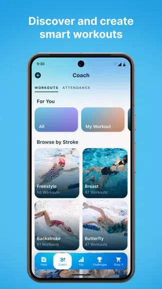 Ключевые возможности Swim.com: Workouts & Tracking:
