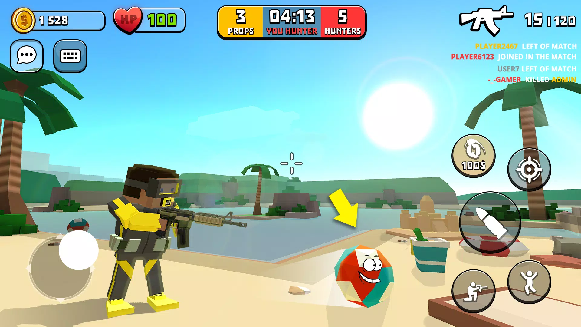 - Обновления персонажа: Улучшите способности вашего персонажа стать более гибким и неуловимым (для реквизита) или более эффективным для охоты (для охотников). Разблокируйте разнообразные скины и оружие, чтобы настроить свой опыт игрового процесса.