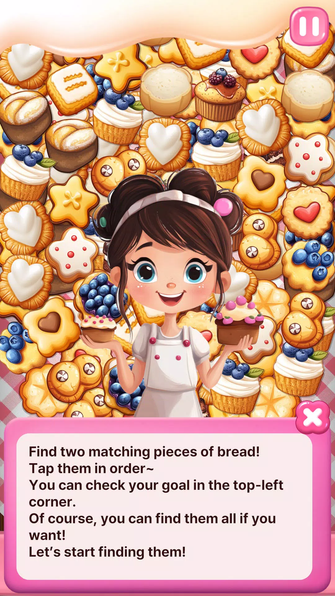 找出兩個相同的麵包。將它們配對成功以完成任務!